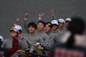 次にスイープ。こちらは1人1本のオールで漕ぐ種目ですので、必然的に偶数人数で乗ることになります。2人乗り、4人乗り、8人乗りがあり、それぞれペア、フォア、エイトと言います。スカルの時と名前が違います。フォアには舵取りのCOXが乗っている場合と、乗らない場合があります。乗っている場合は舵手つきフォア、乗っていない場合はフォアと呼びます。エイトには必ずCOXが乗ります。