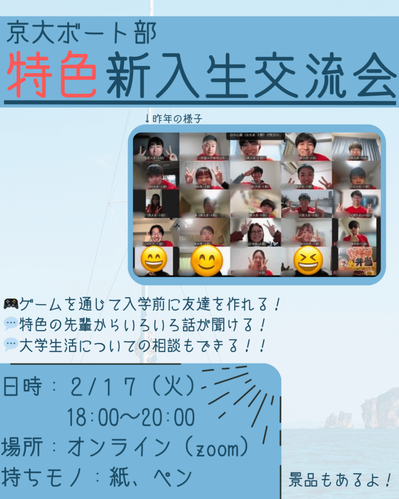 こんにちは!新4回生漕手の鈴木です。 今回は女子部主将の中川仁湖にインタビューしました! ―ボート部に入ったきっかけは何ですか? 入学して初めて行った新歓がボート部の新歓でした。浪人していたので、先に入学していた高校同期 […]