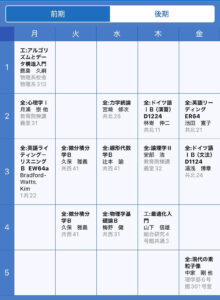 こんにちは。新入生の皆さん合格おめでとうございます。 工学部地球工学科新3回生の田中志穏です。今日は工学部地球工学科の1回生前期の時間割について説明していきたいと思います。すみませんが、僕は国際コースではないので、国際コ […]