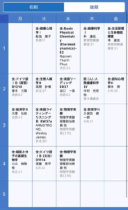 進級条件について述べてきて、いろいろ縛りがあるように感じますが、般教の科目選択は基本自由です。自分の興味のある分野の授業をとるのもよし、とにかく楽単科目をとりまくるのもよしです。自分の生活リズムに合った時間割を作成することも可能です。