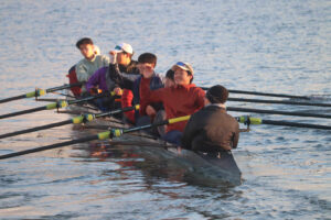 ちなみにこの写真は同志社大学のボート部さんと合同練習させていただく機会があり、同乗した際の写真になります。ボート部の性質上、他大学さんと練習する場所が同じなため、他大学のボート部さんと交流する機会がたくさんあるという点も面白い要素ではないかなと思います。