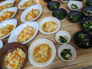 エッセン作り→練習、合宿の際に漕手のために朝昼夜の食事を準備する役割りです。具体的には、食材を準備して、野菜を切ってお肉を炒めて味付け、盛り付けまでです!