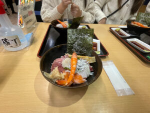 海鮮丼を食べました!ここでお菓子も調達しました。