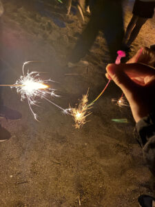 白浜海の家の裏には、砂浜、海が続いています。ここでみんなで花火をしました。